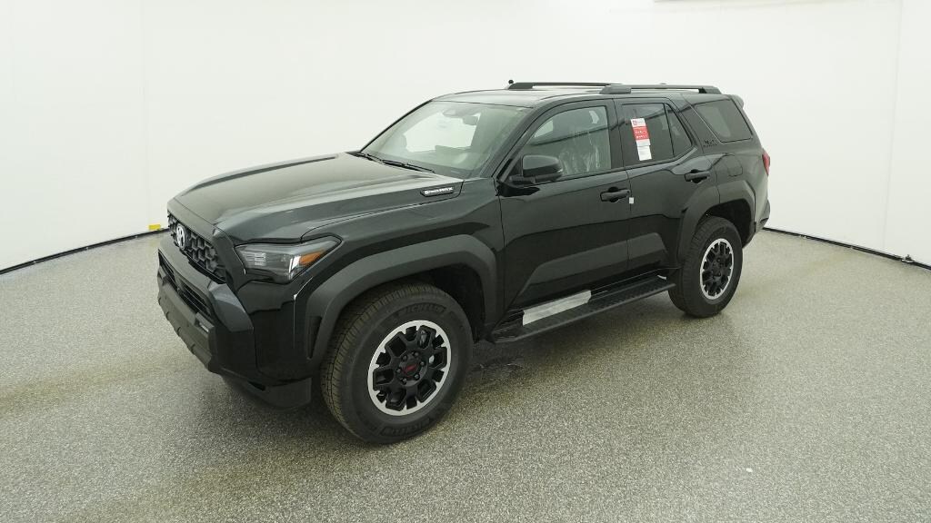 2026 Toyota 4Runner i-FORCE MAX Hybrid TRD Off Road Premium Black 15 Speakers, 4-Wheel Disc Brakes, ABS brakes, Air Conditioning, Alloy wheels, AM/FM radio: SiriusXM, Anti-whiplash front head restraints, Apple CarPlay/Android Auto, Auto High-beam Headlights, Automatic temperature control, Brake assist, Bumpers: body-color, Driver door bin, Driver vanity mirror, Dual front impact airbags, Dual front side impact airbags, Electronic Stability Control, Emergency communication system: Safety Connect (1-year trial), Exterior Parking Camera Rear, Front anti-roll bar, Front Bucket Seats, Front Center Armrest, Front dual zone A/C, Front fog lights, Front reading lights, Front wheel independent suspension, Heated and Ventilated Front Bucket Seats, Heated door mirrors, Heated front seats, Heated steering wheel, Illuminated entry, Knee airbag, Leather Shift Knob, Leather steering wheel, Low tire pressure warning, Memory seat, Navigation System, Occupant sensing airbag, Outside temperature display, Overhead airbag, Overhead console, Panic alarm, Passenger door bin, Passenger vanity mirror, Power door mirrors, Power driver seat, Power passenger seat, Power steering, Power windows, Radio: 14" Audio, Rear anti-roll bar, Rear seat center armrest, Rear side impact airbag, Rear window defroster, Rear window wiper, Remote keyless entry, Security system, SofTex Seat Trim, Speed control, Speed-sensing steering, Split folding rear seat, Spoiler, Steering wheel mounted audio controls, Tachometer, Telescoping steering wheel, Tilt steering wheel, Traction control, Trip computer, Variably intermittent wipers, Ventilated front seats, Wheels: 18" Matte-Black Painted Alloy.