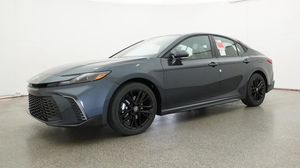 2026 Toyota Camry SE Dark Cosmos 4-Wheel Disc Brakes, 6 Speakers, ABS brakes, Air Conditioning, Alloy wheels, AM/FM radio: SiriusXM, Apple CarPlay/Android Auto, Auto High-beam Headlights, Automatic temperature control, Brake assist, Bumpers: body-color, Delay-off headlights, Driver door bin, Driver vanity mirror, Dual front impact airbags, Dual front side impact airbags, Electronic Stability Control, Emergency communication system: Safety Connect (5-year trial), Exterior Parking Camera Rear, Four wheel independent suspension, Front anti-roll bar, Front Bucket Seats, Front Center Armrest, Front dual zone A/C, Front reading lights, Front Seats, Fully automatic headlights, Heated door mirrors, Heated Front Seats, Illuminated entry, Knee airbag, Leather Shift Knob, Leather steering wheel, Low tire pressure warning, Occupant sensing airbag, Outside temperature display, Overhead airbag, Overhead console, Panic alarm, Passenger door bin, Passenger vanity mirror, Power door mirrors, Power driver seat, Power steering, Power windows, Radio data system, Radio: 12.3" Toyota Multimedia Audio, Radio: 8" Toyota Audio Multimedia, Rear anti-roll bar, Rear reading lights, Rear seat center armrest, Rear window defroster, Remote keyless entry, Security system, SofTex and Fabric Seat Trim, Speed control, Speed-sensing steering, Split folding rear seat, Spoiler, Steering wheel mounted audio controls, Telescoping steering wheel, Tilt steering wheel, Traction control, Trip computer, Turn signal indicator mirrors, Variably intermittent wipers, Wheels: 18" Multi-Spoke Black-Finished Alloy.