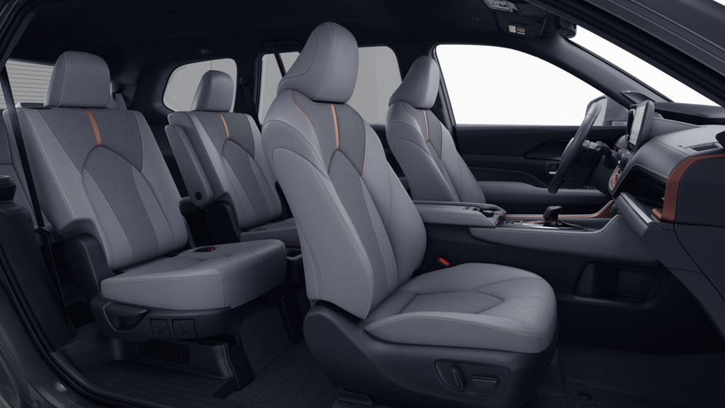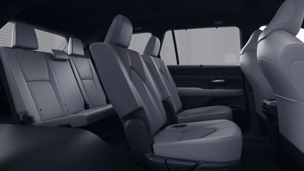 - 7-passenger seating with second-row fold-down captain's chairs and fold-down inboard armrests, adjustable headrests and two cup holders mounted on the floor and 60/40 split, fold-down third-row seats with sliding headrests and recline function