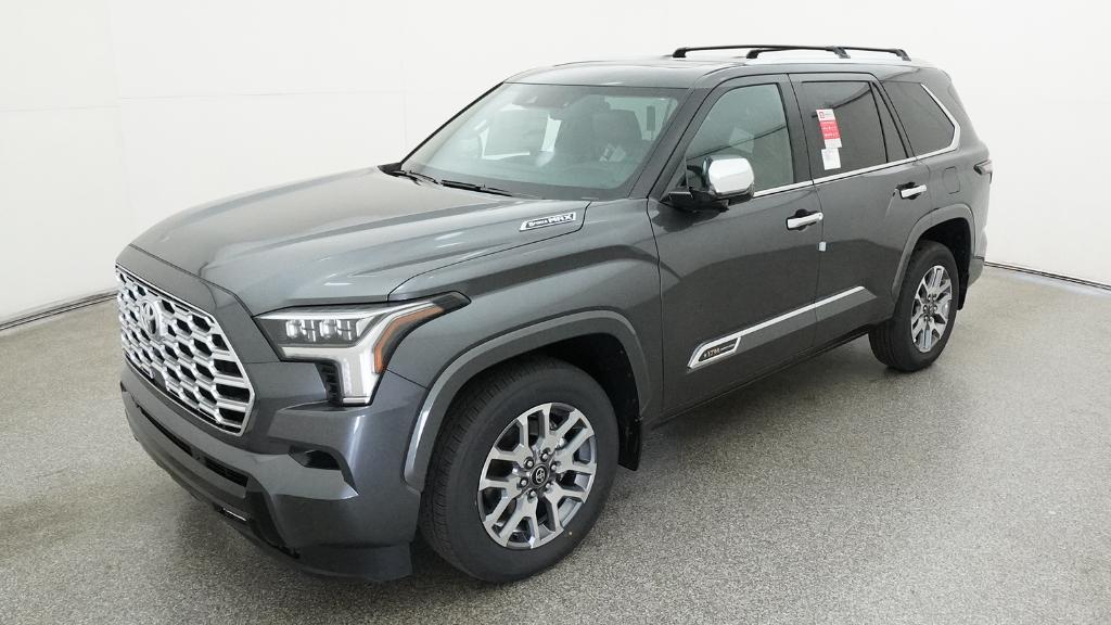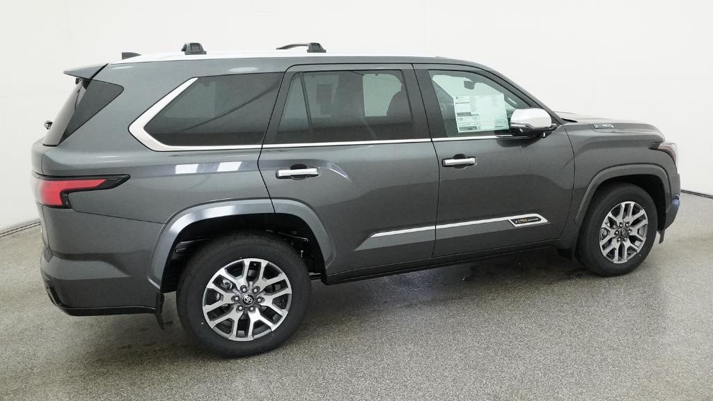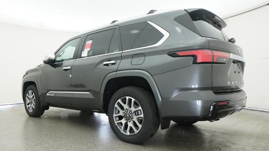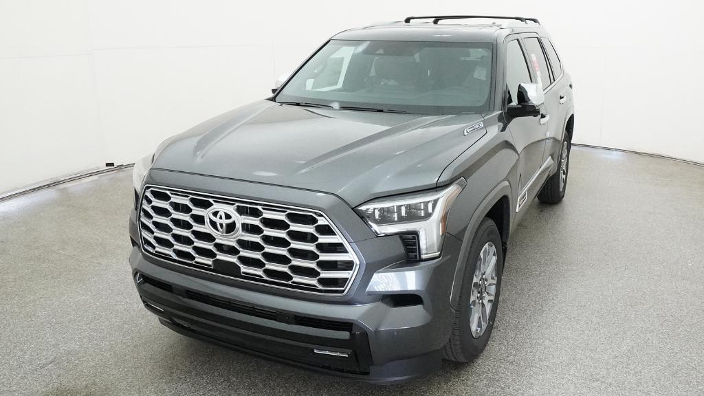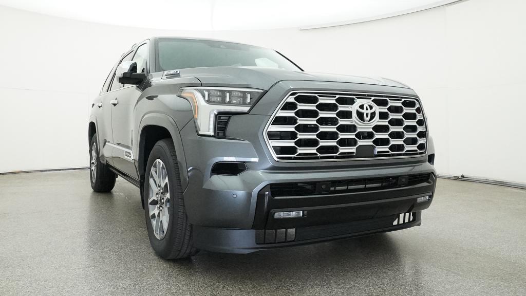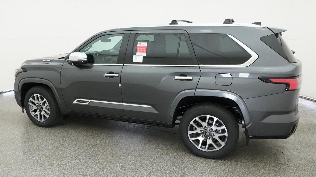 2026 Toyota Sequoia 1794 Edition Magnetic Gray 14 Speakers, 20" Alloy Wheels, 3rd row seats: split-bench, 4-Wheel Disc Brakes, ABS brakes, Air Conditioning, Alloy wheels, AM/FM radio: SiriusXM, Anti-whiplash front head restraints, Apple CarPlay/Android Auto, Auto High-beam Headlights, Auto tilt-away steering wheel, Auto-dimming door mirrors, Auto-dimming Rear-View mirror, Automatic temperature control, Brake assist, Bumpers: body-color, Compass, Delay-off headlights, Driver door bin, Driver vanity mirror, Dual front impact airbags, Dual front side impact airbags, Electronic Stability Control, Emergency communication system: Safety Connect (10-year trial), Exterior Parking Camera Rear, Front anti-roll bar, Front Bucket Seats, Front Center Armrest w/Storage, Front dual zone A/C, Front fog lights, Front reading lights, Front wheel independent suspension, Fully automatic headlights, Garage door transmitter: HomeLink, Genuine wood door panel insert, Headlight cleaning, Heated and Ventilated Front Seats, Heated door mirrors, Heated front seats, Heated rear seats, Heated steering wheel, Illuminated entry, Knee airbag, Leather Shift Knob, Leather steering wheel, Low tire pressure warning, Memory seat, Navigation system: Drive Connect (1 year trial) includes Cloud Navigation with real time traffic and Google POI, Occupant sensing airbag, Outside temperature display, Overhead airbag, Overhead console, Panic alarm, Passenger door bin, Passenger vanity mirror, Power door mirrors, Power driver seat, Power Liftgate, Power moonroof, Power passenger seat, Power steering, Power windows, Premium audio system: JBL, Premium Leather Seat Trim, Radio: 14" Toyota Audio Multimedia with JBL Premium Audio, Rain sensing wipers, Rear air conditioning, Rear reading lights, Rear seat center armrest, Rear window defroster, Rear window wiper, Reclining 3rd row seat, Remote keyless entry, Security system, Speed control, Speed-sensing steering, Split folding rear seat, Spoiler, Sport steering wheel, Steering wheel mounted audio controls, Tachometer, Telescoping steering wheel, Tilt steering wheel, Traction control, Trip computer, Turn signal indicator mirrors, Variably intermittent wipers, Ventilated front seats, Ventilated rear seats, Voltmeter.
