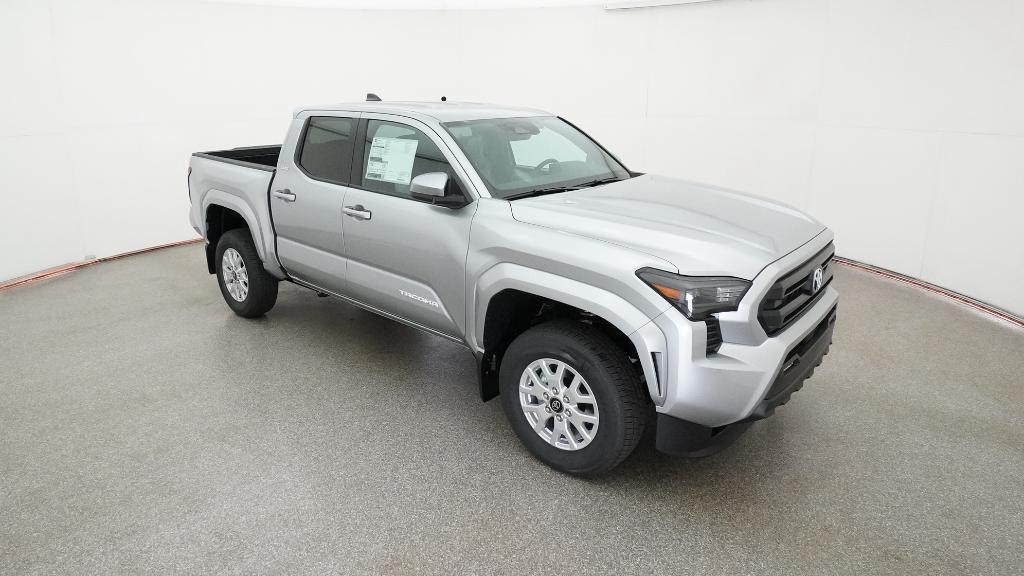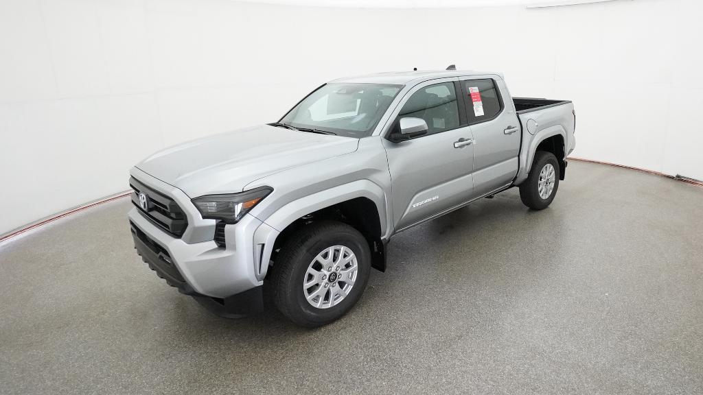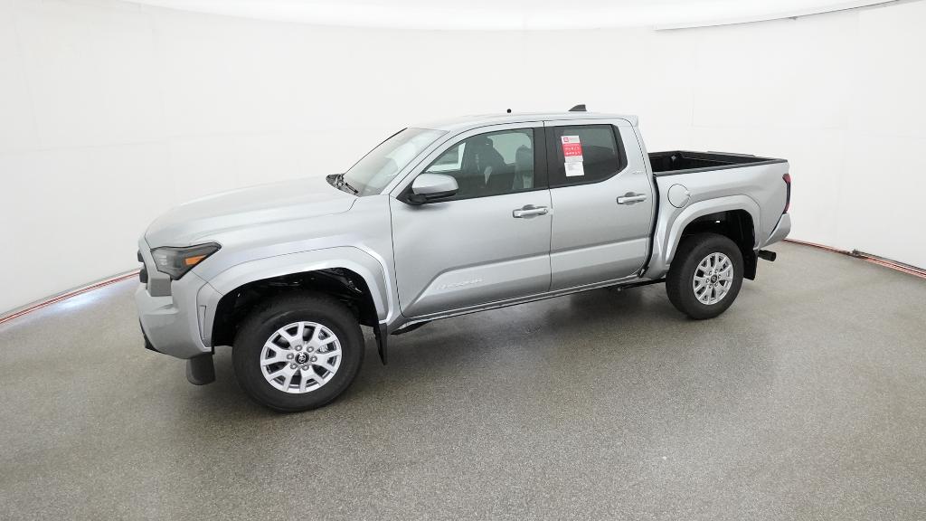 2026 Toyota Tacoma SR5 Celestial Silver 3.583 Axle Ratio, 4-Wheel Disc Brakes, 6 Speakers, ABS brakes, Air Conditioning, Alloy wheels, AM/FM radio: SiriusXM, Anti-whiplash front head restraints, Apple CarPlay/Android Auto, Auto High-beam Headlights, Auto-dimming Rear-View mirror, Brake assist, Bumpers: body-color, Driver door bin, Dual front impact airbags, Dual front side impact airbags, Electronic Stability Control, Emergency communication system: Safety Connect (up to 10-year trial subscription), Exterior Parking Camera Rear, Fabric Seat Trim, Four wheel independent suspension, Front anti-roll bar, Front Bucket Seats, Front Center Armrest, Front fog lights, Front reading lights, Fully automatic headlights, Heated door mirrors, Illuminated entry, Knee airbag, Low tire pressure warning, Occupant sensing airbag, Outside temperature display, Overhead airbag, Overhead console, Panic alarm, Passenger door bin, Power door mirrors, Power steering, Power windows, Radio: 8" Toyota Audio Multimedia, Rear step bumper, Rear window defroster, Remote keyless entry, Speed control, Speed-sensing steering, Split folding rear seat, Steering wheel mounted audio controls, Tachometer, Telescoping steering wheel, Tilt steering wheel, Traction control, Trip computer, Variably intermittent wipers, Wheels: 17" Styled Alloy.