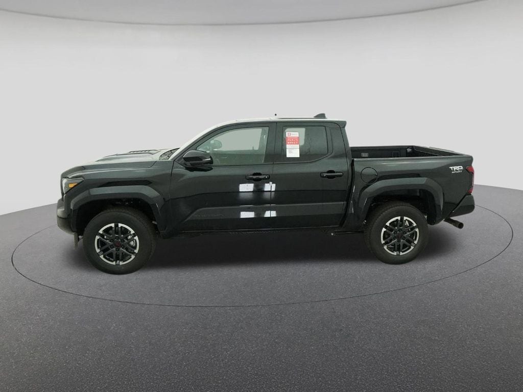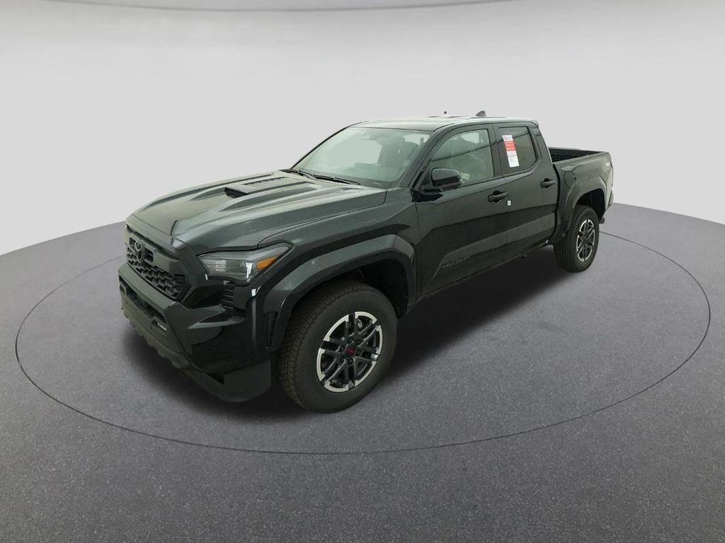 2026 Toyota Tacoma TRD Sport Black 3.583 Axle Ratio, 4-Wheel Disc Brakes, 6 Speakers, ABS brakes, Air Conditioning, Alloy wheels, AM/FM radio: SiriusXM, Anti-whiplash front head restraints, Apple CarPlay/Android Auto, Auto High-beam Headlights, Auto-dimming Rear-View mirror, Automatic temperature control, Brake assist, Bumpers: body-color, Driver door bin, Driver vanity mirror, Dual front impact airbags, Dual front side impact airbags, Electronic Stability Control, Emergency communication system: Safety Connect (up to 10-year trial subscription), Exterior Parking Camera Rear, Fabric Seat Trim, Four wheel independent suspension, Front anti-roll bar, Front Bucket Seats, Front Center Armrest, Front fog lights, Front reading lights, Fully automatic headlights, Heated door mirrors, Illuminated entry, Knee airbag, Leather Shift Knob, Leather steering wheel, Low tire pressure warning, Occupant sensing airbag, Outside temperature display, Overhead airbag, Overhead console, Panic alarm, Passenger door bin, Passenger vanity mirror, Power door mirrors, Power steering, Power windows, Radio: 8" Toyota Audio Multimedia, Rear step bumper, Rear window defroster, Remote keyless entry, Security system, Speed control, Speed-sensing steering, Split folding rear seat, Steering wheel mounted audio controls, Tachometer, Telescoping steering wheel, Tilt steering wheel, Traction control, Trip computer, Turn signal indicator mirrors, Variably intermittent wipers, Wheels: 18" TRD Sport Alloy.