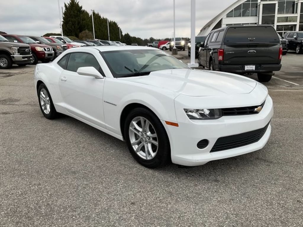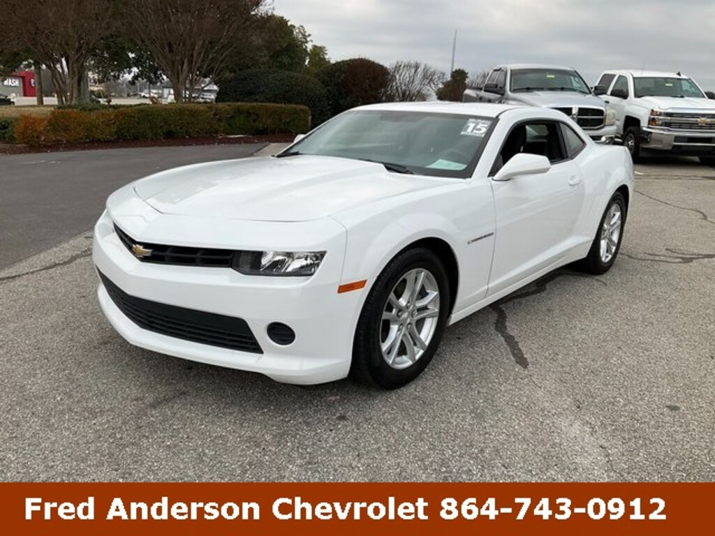 Check out all these great Preferred Equipment Group 2LS (2 Front Cup Holders, 4-Wheel Antilock 4-Wheel Disc Brakes, Analog Instrumentation, Bluetooth® For Phone, Carpeted Front Floor Mats, Electric Rear-Window Defogger, Electronic Cruise Control, LATCH System, Maintenance-Free Battery, Manual Rake & Telescopic Steering Column, OnStar 6 Months Directions & Connections Plan, Power Programmable Door Locks, Remote Keyless Entry, StabiliTrak, Stainless-Steel Dual-Outlet Exhaust, Steering Wheel Mounted Audio Controls, and Tire Sealant & Inflator Kit), 18" Painted Aluminum Wheels, 2-Way Manual Fr Passenger Adjuster w/Power Recline, 4-Way Manual Driver Adjuster w/Power Recline, 4-Wheel Disc Brakes, 6 Speakers, 6-Speaker Audio System Feature, ABS brakes, Air Conditioning, Alloy wheels, AM/FM radio: SiriusXM, Brake assist, Bumpers: body-color, CD player, Compass, Delay-off headlights, Driver door bin, Driver vanity mirror, Dual front impact airbags, Dual front side impact airbags, Electronic Stability Control, Emergency communication system: OnStar Directions & Connections, Four wheel independent suspension, Front anti-roll bar, Front Bucket Seats, Front Center Armrest, Front reading lights, Front Sport Bucket Seats, Fully automatic headlights, Illuminated entry, Low tire pressure warning, LS Cloth Seat Trim, Occupant sensing airbag, Outside temperature display, Overhead airbag, Panic alarm, Passenger door bin, Passenger vanity mirror, Power door mirrors, Power driver seat, Power passenger seat, Power steering, Power windows, Radio data system, Radio: AM/FM Stereo w/CD/MP3 Playback Capability, Rear anti-roll bar, Rear window defroster, Remote keyless entry, Security system, SiriusXM Satellite Radio, Speed control, Speed-sensing steering, Steering wheel mounted audio controls, Tachometer, Telescoping steering wheel, Tilt steering wheel, Traction control, Trip computer, and Variably intermittent wipers. Summit White 2015 Chevrolet Camaro 2LS CARFAX One-Owner. **STEERING WHEEL AUDIO CONTROLS**, **ONE-OWNER**, **LOCAL TRADE**, **KEYLESS ENTRY**, **GREAT CARFAX SERVICE HISTORY**, **AUTOMATIC TRANSMISSION**, **POWER SEAT**. 19/30 City/Highway MPG