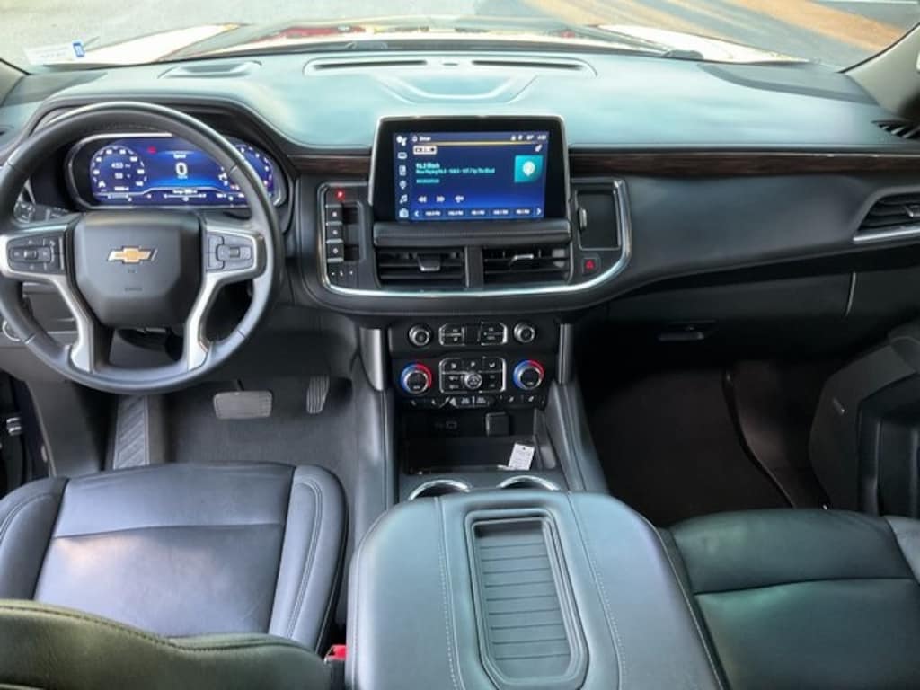 Check out all these great Preferred Equipment Group 1LT (1st & 2nd Row Color-Keyed Carpeted Floor Mats, Auto-Dimming Inside Rear-View Mirror, Bose 9-Speaker Stereo Audio System Feature, Bright Front & Rear Door Sill Plates, Color-Keyed Carpeting Floor Covering, Driver & Front Outboard Passenger Airbags, Enhanced Driver Information Center, Floor Console w/Storage Area, Hands-Free Rear Power Programmable Liftgate, Infotainment Display, LED Daytime Running Lamps, Memory Settings for Driver, Remote Start, SiriusXM Radio w/360L, Universal Home Remote, Wireless Charging, and Wrapped Steering Wheel), 10-Way Power Driver & Passenger Seat Adjusters, 2nd Row Manual Bucket Seats, 3.23 Rear Axle Ratio, 3rd row seats: split-bench, 4-Wheel Disc Brakes, 9 Speakers, ABS brakes, Air Conditioning, Alloy wheels, AM/FM radio: SiriusXM with 360L, Apple CarPlay/Android Auto, Auto High-beam Headlights, Auto-dimming Rear-View mirror, Automatic temperature control, Brake assist, Bumpers: body-color, Compass, Delay-off headlights, Deleted 3 Years of Remote Access, Driver door bin, Driver vanity mirror, Dual front impact airbags, Dual front side impact airbags, Electronic Stability Control, Emergency communication system: OnStar and Chevrolet connected services capable, Four wheel independent suspension, Front anti-roll bar, Front Bucket Seats, Front Center Armrest, Front dual zone A/C, Front High-Back Reclining Bucket Seats, Front reading lights, Fully automatic headlights, Garage door transmitter, Heated door mirrors, Heated Driver & Front Passenger Seats, Heated front seats, Illuminated entry, Leather-Appointed Seat Trim, Low tire pressure warning, Memory seat, Navigation System, Occupant sensing airbag, Outside temperature display, Overhead airbag, Overhead console, Panic alarm, Passenger door bin, Passenger vanity mirror, Power door mirrors, Power driver seat, Power Liftgate, Power passenger seat, Power steering, Power windows, Premium audio system: Chevrolet Infotainment 3 Premium, Premium Smooth Ride Suspension, Radio: Chevrolet Infotainment 3 Premium System, Rain sensing wipers, Rear air conditioning, Rear anti-roll bar, Rear reading lights, Rear seat center armrest, Rear window defroster, Rear window wiper, Remote keyless entry, Roof rack: rails only, Security system, Speed control, Speed-sensing steering, Split folding rear seat, Spoiler, Steering wheel mounted audio controls, Tachometer, Telescoping steering wheel, Tilt steering wheel, Traction control, Trip computer, Variably intermittent wipers, Voltmeter, and Wheels: 18" x 8.5" Bright Silver Painted Aluminum. Dark Ash Metallic 2023 Chevrolet Tahoe LT **STEERING WHEEL AUDIO CONTROLS**, **POWER LIFTGATE**, **LOCAL TRADE**, **KEYLESS ENTRY**, **GREAT CARFAX SERVICE HISTORY**, **AUTOMATIC TRANSMISSION**, **4WD**, **BACK UP CAMERA**, **BLUETOOTH**, **POWER SEAT**, **NAVIGATION**, **Heated Seats**.