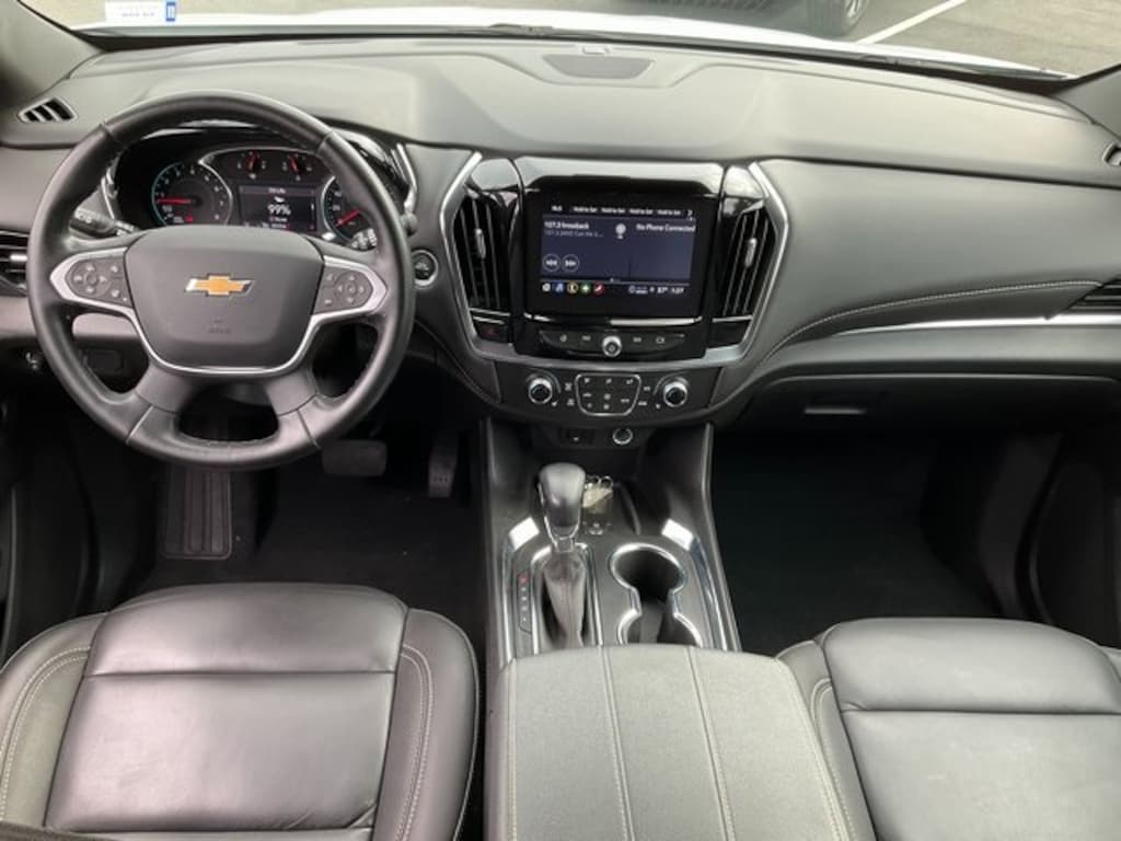 Check out all these great Front License Plate Bracket Mounting Package, Preferred Equipment Group 3LT (Heated Driver & Front Passenger Seats), 3.49 Axle Ratio, 3rd row seats: split-bench, 4-Wheel Disc Brakes, 6 Speakers, 6-Speaker Audio System Feature, 6-Way Power Front Passenger Seat, 8-Way Power Driver Seat Adjuster, ABS brakes, Air Conditioning, Alloy wheels, AM/FM radio: SiriusXM with 360L, Apple CarPlay/Android Auto, Auto High-beam Headlights, Automatic temperature control, Black Roof Rails, Brake assist, Bumpers: body-color, Compass, Delay-off headlights, Driver door bin, Driver vanity mirror, Dual front impact airbags, Dual front side impact airbags, Electronic Stability Control, Emergency communication system, Exterior Parking Camera Rear, Four wheel independent suspension, Front anti-roll bar, Front Bucket Seats, Front Center Armrest, Front dual zone A/C, Front Passenger 2-Way Power Lumbar, Front reading lights, Fully automatic headlights, Garage door transmitter, Heated door mirrors, Heated front seats, Heated steering wheel, Illuminated entry, Leather steering wheel, Leather-Appointed Seat Trim, Low tire pressure warning, Not Equipped w/Rear Park Assist (060), Occupant sensing airbag, Outside temperature display, Overhead airbag, Overhead console, Panic alarm, Passenger door bin, Passenger vanity mirror, Power door mirrors, Power Driver Lumbar Control, Power driver seat, Power Liftgate, Power passenger seat, Power steering, Power windows, Premium audio system: Chevrolet Infotainment 3 Plus, Radio data system, Radio: Chevrolet Infotainment 3 Plus System, Rear air conditioning, Rear anti-roll bar, Rear reading lights, Rear window defroster, Rear window wiper, Remote keyless entry, Security system, SiriusXM w/360L, Speed control, Speed-sensing steering, Spoiler, Steering wheel mounted audio controls, Tachometer, Telescoping steering wheel, Tilt steering wheel, Traction control, Trip computer, Turn signal indicator mirrors, Variably intermittent wipers, Voltmeter, and Wheels: 18" Bright Silver-Painted Aluminum. Summit White 2023 Chevrolet Traverse LT Leather CARFAX One-Owner. **STEERING WHEEL AUDIO CONTROLS**, **POWER LIFTGATE**, **ONE-OWNER**, **LOCAL TRADE**, **KEYLESS ENTRY**, **GREAT CARFAX SERVICE HISTORY**, **AUTOMATIC TRANSMISSION**, **BACK UP CAMERA**, **BLUETOOTH**, **POWER SEAT**, **Heated Seats**. 18/27 City/Highway MPG