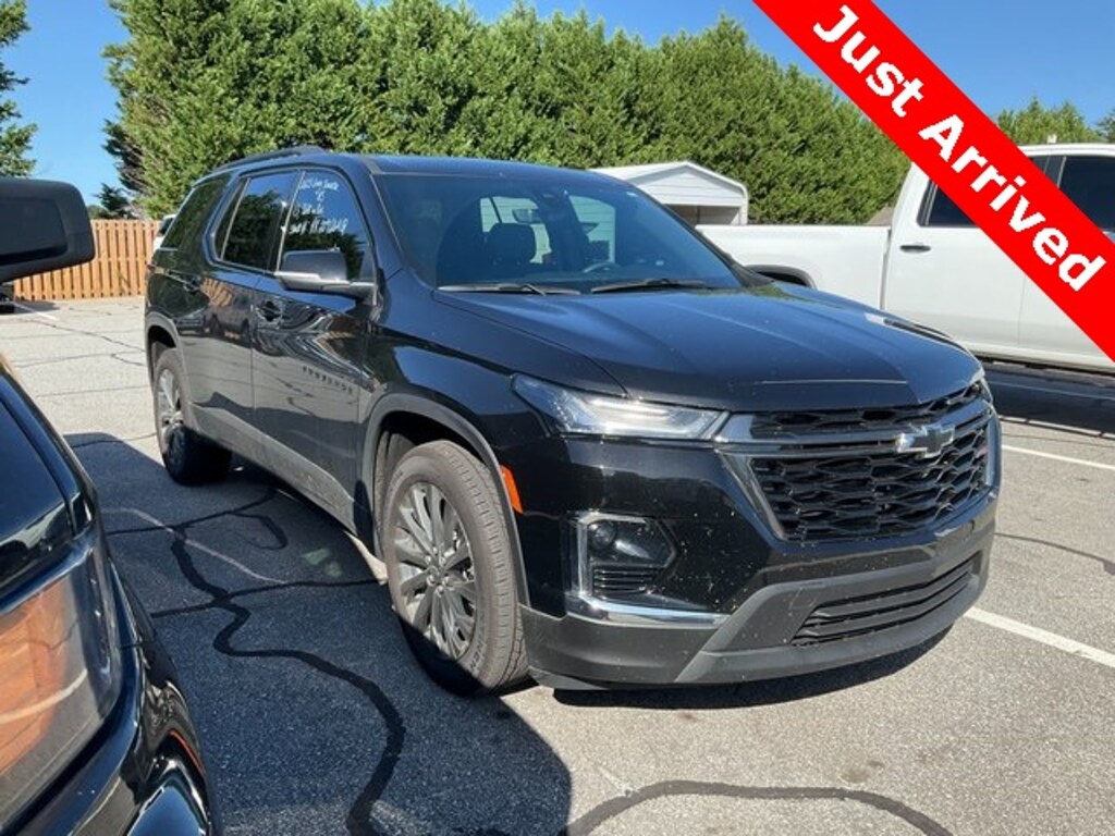 Check out all these great Preferred Equipment Group 2LT (Heated Driver & Front Passenger Seats), Trailering Equipment (Heavy-Duty Cooling System, Hitch Guidance w/Hitch View, and Trailering Assist Guidelines), 10 Speakers, 3.49 Axle Ratio, 3rd row seats: split-bench, 4-Wheel Disc Brakes, 6-Way Power Front Passenger Seat, 8-Way Power Driver Seat Adjuster, ABS brakes, Air Conditioning, Alloy wheels, AM/FM radio: SiriusXM with 360L, Apple CarPlay/Android Auto, Auto High-beam Headlights, Auto-dimming Rear-View mirror, Automatic temperature control, Bose Premium 10-Speaker Audio System Feature, Brake assist, Bumpers: body-color, Compass, Delay-off headlights, Driver door bin, Driver vanity mirror, Dual front impact airbags, Dual front side impact airbags, Dual SkyScape 2-Panel Power Sunroof, Electronic Stability Control, Emergency communication system, Exterior Parking Camera Rear, Four wheel independent suspension, Front anti-roll bar, Front Bucket Seats, Front Center Armrest, Front dual zone A/C, Front Passenger 2-Way Power Lumbar, Front reading lights, Fully automatic headlights, Garage door transmitter, Heated door mirrors, Heated front seats, Heated steering wheel, Illuminated entry, Leather steering wheel, Low tire pressure warning, Navigation System, Not Equipped w/Rear Park Assist (060), Occupant sensing airbag, Outside temperature display, Overhead airbag, Overhead console, Panic alarm, Passenger door bin, Passenger vanity mirror, Perforated Leather-Appointed Seat Trim, Power door mirrors, Power Driver Lumbar Control, Power driver seat, Power Liftgate, Power passenger seat, Power steering, Power windows, Premium audio system: Chevrolet Infotainment 3 Plus, Radio data system, Radio: Chevrolet Infotainment 3 Plus System w/Navi, Rear air conditioning, Rear anti-roll bar, Rear reading lights, Rear window defroster, Rear window wiper, Remote keyless entry, Security system, SiriusXM w/360L, Speed control, Speed-sensing steering, Spoiler, Steering wheel mounted audio controls, Tachometer, Telescoping steering wheel, Tilt steering wheel, Traction control, Trip computer, Turn signal indicator mirrors, Variably intermittent wipers, Voltmeter, and Wheels: 20" Dark Aluminum. Recent Arrival! Mosaic Black Metallic 2023 Chevrolet Traverse RS CARFAX One-Owner. Clean CARFAX. Odometer is 20480 miles below market average! **ONE-OWNER**, **NO ACCIDENT HISTORY ON CARFAX**, **LOCAL TRADE**, **GREAT CARFAX SERVICE HISTORY**.