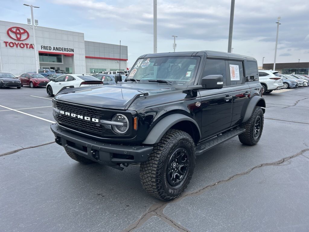 Recent Arrival! CARFAX One-Owner. 2024 Ford Bronco Wildtrak Shadow Black 10 Speakers w/Subwoofer, 360-Degree Camera, 4-Wheel Disc Brakes, 4.7 Axle Ratio, 7 Speakers, ABS brakes, Adaptive Cruise Control, Additional Sound Deadening, Air Conditioning, Alloy wheels, AM/FM radio: SiriusXM with 360L, AM/FM Stereo, Auto High-beam Headlights, Auto-dimming Rear-View mirror, Automatic temperature control, Brake assist, Compass, Connected Navigation, Delay-off headlights, Driver door bin, Driver vanity mirror, Dual front impact airbags, Dual front side impact airbags, Electronic Stability Control, Emergency communication system: 911 Assist, Equipment Group 354A High/Lux Package, Evasive Steering Assist, Exterior Parking Camera Rear, Front & Rear Floor Liners w/o Carpet Floor Mats, Front anti-roll bar, Front Bucket Seats, Front Center Armrest, Front dual zone A/C, Front fog lights, Front License Plate Bracket, Front Parking Sensors, Front reading lights, Front Row Top Panels Storage Bag, Front wheel independent suspension, Fully automatic headlights, Hard Top Sound Deadening Headliner, Heated door mirrors, Heated front seats, Heated Leather-Trimmed/Vinyl Bucket Seats, Heated Steering Wheel, Illuminated entry, Information on Demand Panel, Integrated roll-over protection, Leather Shift Knob, Low tire pressure warning, Navigation system: Connected Navigation, Occupant sensing airbag, Outside temperature display, Overhead airbag, Overhead console, Panic alarm, Passenger door bin, Passenger vanity mirror, Powder Coated Tube Step, Power door mirrors, Power steering, Power windows, Radio data system, Radio: B&O Sound System by Bang & Olufsen, Rear-Window Defroster & Washer, Remote keyless entry, Security system, Shadow Black Painted Hard Top, Sideview Mirrors, SiriusXM Radio w/360L, Speed control, Split folding rear seat, Steering wheel mounted audio controls, SYNC 4, Tachometer, Telescoping steering wheel, Tilt steering wheel, Traction control, Trip computer, Universal Garage Door Opener, Variably intermittent wipers, Voltmeter, Wheels: 17" Black High Gloss-Painted Aluminum, Wireless Charging Pad.
