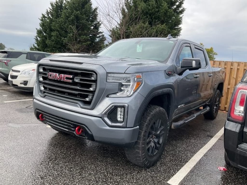 Check out all these great Cargo Convenience Package (Console-Mounted Safe (LPO) and Rear Underseat Storage (LPO)), Preferred Equipment Group 4SB (12-Volt Rear Auxiliary Power Outlet, 120-Volt Bed Mounted Power Outlet, 120-Volt Instrument Panel Power Outlet, 170 Amp Alternator, 2 USB Ports, 2 USB Ports (1st Row), 4.2" Diagonal Color Display Driver Info Center, 4G LTE Wi-Fi Hotspot Capable, Auto-Locking Rear Differential, Auxiliary External Transmission Oil Cooler, Body-Color Surround Grille, Color-Keyed Carpeting Floor Covering, Compass, Deep-Tinted Glass, Electric Rear-Window Defogger, Electrical Lock Control Steering Column, Floor-Mounted Center Console, Front Prem Floor Liners w/Removable Carpet Insert, GMC Connected Access Capable, HD Rear Vision Camera, Heated Driver & Front Outboard Passenger Seating, Heavy-Duty Air Filter, Hill Descent Control, Hitch Guidance w/Hitch View, In-Vehicle Trailering App, Integrated Trailer Brake Controller, Keyless Open & Start, LED Cargo Area Lighting, Manual Tilt-Wheel & Telescoping Steering Column, OnStar & GMC Connected Services Capable, Power Door Locks, Power Front Passenger Windows w/Express Up/Down, Power Front Windows w/Driver Express Up/Down, Power Rear Windows w/Express Down, ProGrade Trailering System, Rear Dual USB Charging-Only Ports, Rear Prem Floor Liners w/Removable Carpet Insert, Rear Wheelhouse Liners, Red Recovery Hooks, Remote Vehicle Starter System, Spray-On Pickup Bed Liner w/AT4 Logo, Steering Wheel Audio Controls, Theft Deterrent System (Unauthorized Entry), and Ventilated Driver & Front Passenger Seats), Trailering Package (Hitch Guidance), 10-Way Power Driver Seat Adjuster w/Lumbar, 10-Way Power Passenger Seat Adjuster w/Lumbar, 18" x 8.5" Machined Aluminum Wheels, 3.23 Rear Axle Ratio, 4-Wheel Disc Brakes, 6 Speakers, 6-Speaker Audio System Feature, ABS brakes, Air Conditioning, Alloy wheels, AM/FM radio: SiriusXM with 360L, Apple CarPlay/Android Auto, Auto-dimming door mirrors, Auto-dimming Rear-View mirror, Automatic temperature control, Brake assist, Bumpers: body-color, Delay-off headlights, Driver door bin, Driver Memory, Driver vanity mirror, Dual front impact airbags, Dual front side impact airbags, Electronic Stability Control, Front anti-roll bar, Front Bucket Seats, Front Center Armrest, Front dual zone A/C, Front fog lights, Front reading lights, Front wheel independent suspension, Fully automatic headlights, Heated 2nd Row Outboard Seats, Heated door mirrors, Heated front seats, Heated steering wheel, Illuminated entry, Low tire pressure warning, Memory seat, Not Equipped w/Automatic Stop/Start, Occupant sensing airbag, Off-Road Suspension, Outside temperature display, Overhead airbag, Overhead console, Panic alarm, Passenger door bin, Passenger vanity mirror, Perforated Leather-Appointed Front Seat Trim, Power door mirrors, Power driver seat, Power passenger seat, Power steering, Power windows, Premium audio system: GMC Infotainment System, Radio data system, Radio: Premium GMC Infotainment Sys w/Multi-Touch, Rear reading lights, Rear seat center armrest, Rear step bumper, Rear window defroster, Remote keyless entry, Security system, SiriusXM w/360L, Speed control, Speed-sensing steering, Split folding rear seat, Steering wheel mounted audio controls, Tachometer, Telescoping steering wheel, Tilt steering wheel, Traction control, Trailer Tire Pressure Monitor System, Trip computer, Variably intermittent wipers, Ventilated front seats, Voltmeter, and Wheels: 20" x 9" Machined Aluminum. Recent Arrival! Satin Steel Metallic 2021 GMC Sierra 1500 AT4 Clean CARFAX. **NO ACCIDENT HISTORY ON CARFAX**, **LOCAL TRADE**, **GREAT CARFAX SERVICE HISTORY**.