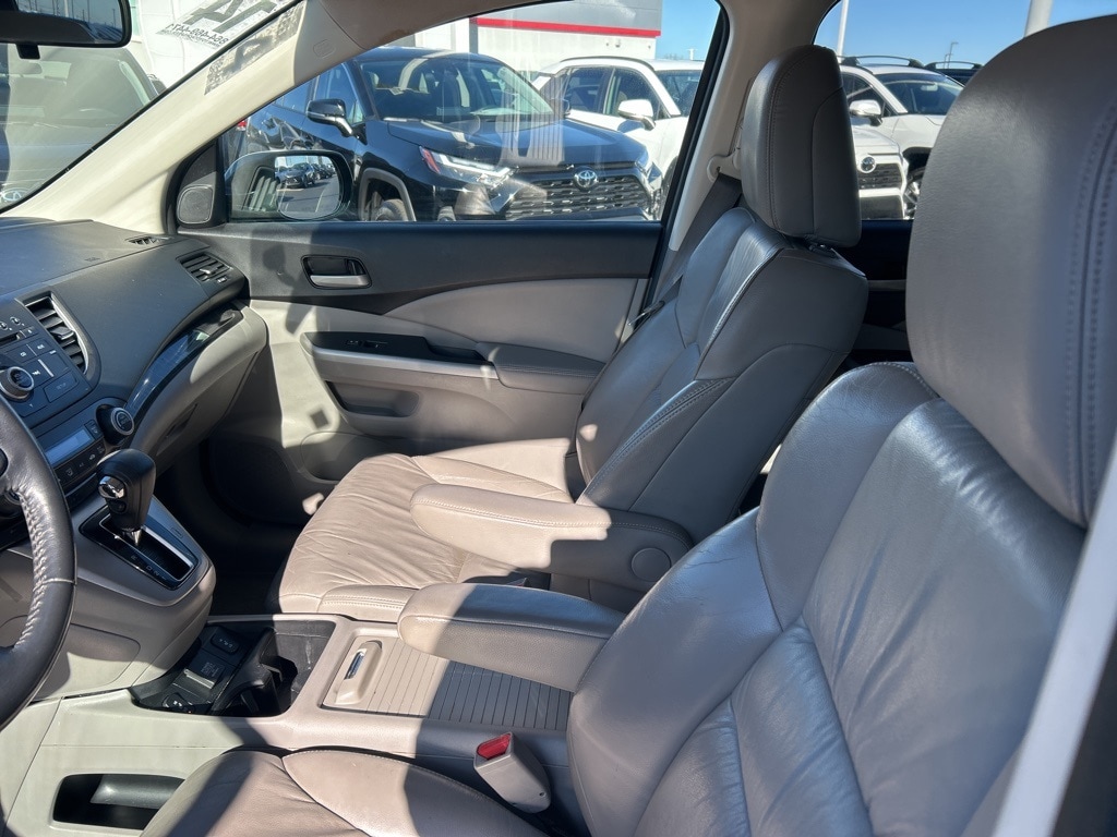 Clean CARFAX. 2014 Honda CR-V EX-L Urban Titanium Metallic 17" 10-Spoke Alloy Wheels, 4-Wheel Disc Brakes, 4.44 Axle Ratio, 7 Speakers, ABS brakes, Air Conditioning, Alloy wheels, AM/FM radio: XM, Automatic temperature control, Brake assist, Bumpers: body-color, CD player, Compass, Delay-off headlights, Driver door bin, Driver vanity mirror, Driver's Seat Mounted Armrest, Dual front impact airbags, Dual front side impact airbags, Electronic Stability Control, Exterior Parking Camera Rear, Four wheel independent suspension, Front anti-roll bar, Front Bucket Seats, Front dual zone A/C, Front fog lights, Front reading lights, Heated door mirrors, Heated Front Bucket Seats, Heated front seats, Illuminated entry, Leather Shift Knob, Leather-Trimmed Seats, Low tire pressure warning, Occupant sensing airbag, Outside temperature display, Overhead airbag, Overhead console, Panic alarm, Passenger door bin, Passenger seat mounted armrest, Passenger vanity mirror, Power door mirrors, Power driver seat, Power moonroof, Power steering, Power windows, Radio data system, Radio: AM/FM/CD Audio System w/XM Radio, Rear anti-roll bar, Rear seat center armrest, Rear window defroster, Rear window wiper, Remote keyless entry, Roof rack: rails only, Security system, Speed control, Speed-sensing steering, Speed-Sensitive Wipers, Split folding rear seat, Steering wheel mounted audio controls, Tachometer, Telescoping steering wheel, Tilt steering wheel, Traction control, Trip computer, Variably intermittent wipers.
