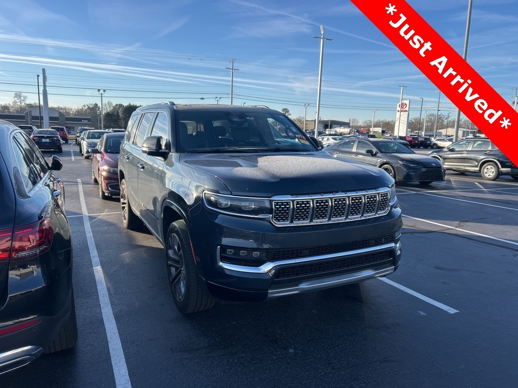 Check out all these great options Quick Order Package 28W, Two Tone Paint Group, 3.92 Rear Axle Ratio, 3rd row seats: bench, 4-Wheel Disc Brakes, ABS brakes, Adjustable pedals, Air Conditioning, Alloy wheels, AM/FM radio: SiriusXM with 360L, Anti-whiplash front head restraints, Apple CarPlay/Android Auto, Audio memory, Auto High-beam Headlights, Auto-dimming door mirrors, Auto-dimming Rear-View mirror, Auto-leveling suspension, Automatic temperature control, Body Color Roof w/PXJ, Brake assist, Bumpers: body-color, Compass, Delay-off headlights, Driver door bin, Driver vanity mirror, Driver's Seat Mounted Armrest, Dual front impact airbags, Dual front side impact airbags, Electronic Stability Control, Emergency communication system: Wagoneer Connect, Four wheel independent suspension, Front anti-roll bar, Front Bucket Seats, Front Center Armrest w/Storage, Front dual zone A/C, Front fog lights, Front reading lights, Fully automatic headlights, Garage door transmitter, Genuine wood console insert, Genuine wood dashboard insert, Genuine wood door panel insert, Heads-Up Display, Heated door mirrors, Heated front seats, Heated rear seats, Heated steering wheel, Illuminated entry, Knee airbag, Leather steering wheel, Low tire pressure warning, Memory seat, Navigation System, Night vision lights, Normal Duty Suspension, Occupant sensing