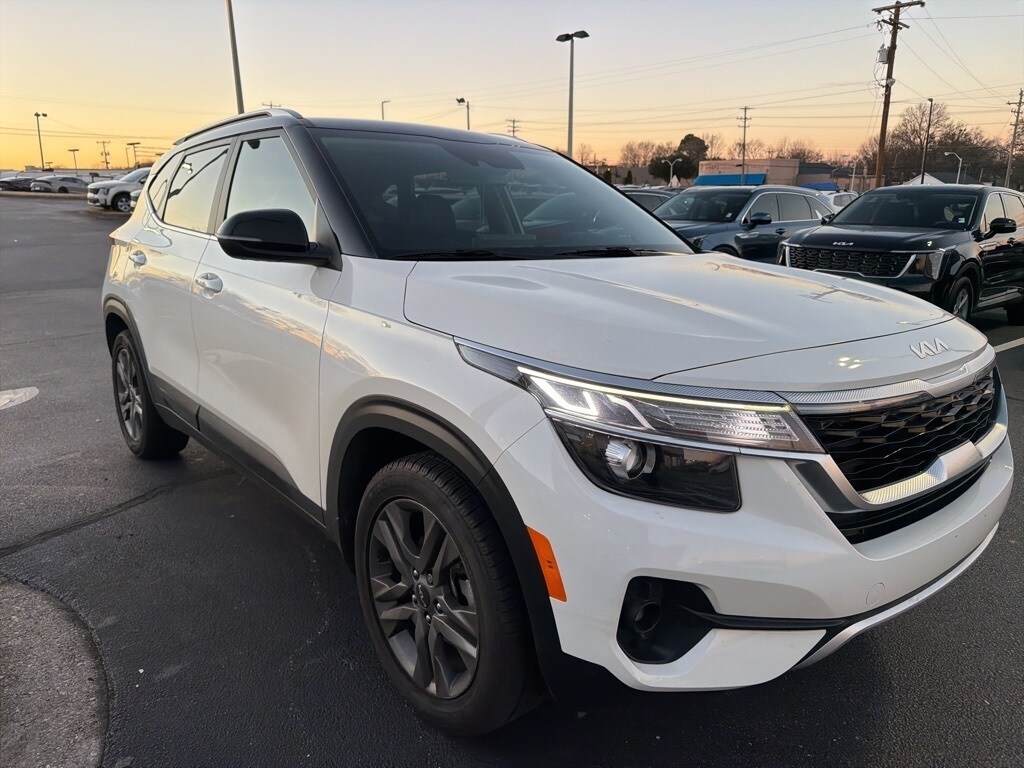 Recent Arrival! Clean CARFAX. 2023 Kia Seltos S Clear White/Black Roof 4-Wheel Disc Brakes, 6 Speakers, 6.052 Axle Ratio, ABS brakes, Air Conditioning, Alloy wheels, AM/FM radio, Apple CarPlay & Android Auto, Auto Dimming Mirror w/HomeLink & Compass, Auto High-beam Headlights, Automatic temperature control, Brake assist, Bumpers: body-color, Carpet Floor Mats, Cloth & Sofino Premium Leatherette Seat Trim, Delay-off headlights, Driver door bin, Driver vanity mirror, Dual front impact airbags, Dual front side impact airbags, Electronic Stability Control, Emergency communication system: 911 Connect, Exterior Parking Camera Rear, Front anti-roll bar, Front Bucket Seats, Front Center Armrest, Front fog lights, Front reading lights, Front wheel independent suspension, Fully automatic headlights, Glossy Black Door Garnish, Glossy Black Door Garnish Package, Heated door mirrors, Illuminated entry, Leather Shift Knob, Low tire pressure warning, Occupant sensing airbag, Outside temperature display, Overhead airbag, Overhead console, Panic alarm, Passenger door bin, Passenger vanity mirror, Power door mirrors, Power steering, Power windows, Radio: AM/FM/MP3 Display Audio, Rear seat center armrest, Rear window defroster, Rear window wiper, Remote keyless entry, Security system, Speed control, Speed-sensing steering, Split folding rear seat, Spoiler, Steering wheel mounted audio controls, Tachometer, Telescoping steering wheel, Tilt steering wheel, Traction control, Trip computer, Turn signal indicator mirrors, Variably intermittent wipers, Wheels: 17" Alloy w/Dark Gray Finish.