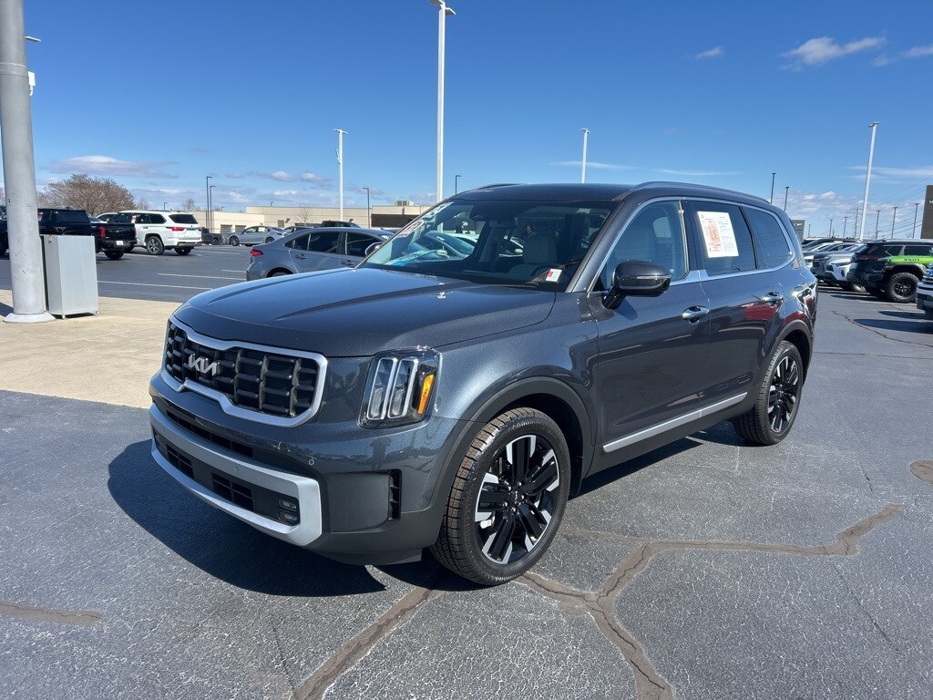 Recent Arrival! Clean CARFAX. 2024 Kia Telluride SX Gravity Gray 10 Speakers, 3.510 Axle Ratio, 3rd row seats: split-bench, 4-Wheel Disc Brakes, ABS brakes, Air Conditioning, Alloy wheels, AM/FM radio: SiriusXM, Apple CarPlay & Android Auto, Auto High-beam Headlights, Auto-dimming Rear-View mirror, Automatic temperature control, Brake assist, Bumpers: body-color, Cargo Cover, Cargo Tray Seat Back, Carpet Floor Mats, Compass, Delay-off headlights, Driver door bin, Driver vanity mirror, Dual front impact airbags, Dual front side impact airbags, Electronic Stability Control, Emergency communication system: 911 Connect, Exterior Parking Camera Rear, Four wheel independent suspension, Front anti-roll bar, Front Bucket Seats, Front Center Armrest, Front dual zone A/C, Front fog lights, Front reading lights, Fully automatic headlights, Garage door transmitter: HomeLink, harman/kardon® Speakers, Heated & Ventilated Front Bucket Seats, Heated door mirrors, Heated front seats, Hybrid Cargo Net, Illuminated entry, Knee airbag, Leather Seat Trim, Leather Shift Knob, Leather steering wheel, Low tire pressure warning, Memory seat, Mud Guard Kit, Navigation System, Occupant sensing airbag, Outside temperature display, Overhead airbag, Overhead console, Panic alarm, Passenger door bin, Passenger vanity mirror, Power door mirrors, Power driver seat, Power Liftgate, Power moonroof, Power passenger seat, Power steering, Power windows, Radio data system, Radio: AM/FM Harman Kardon Premium Audio System, Rear air conditioning, Rear anti-roll bar, Rear audio controls, Rear reading lights, Rear side impact airbag, Rear window defroster, Rear window wiper, Reclining 3rd row seat, Remote keyless entry, Roof rack: rails only, Security system, Smart Key w/ Push Button and Remote Start, Speed control, Speed-sensing steering, Split folding rear seat, Spoiler, Steering wheel mounted audio controls, Tachometer, Telescoping steering wheel, Tilt steering wheel, Traction control, Trip computer, Turn signal indicator mirrors, Variably intermittent wipers, Ventilated front seats, Wheel Locks, Wheels: 20" x 7.5" Black Finish.