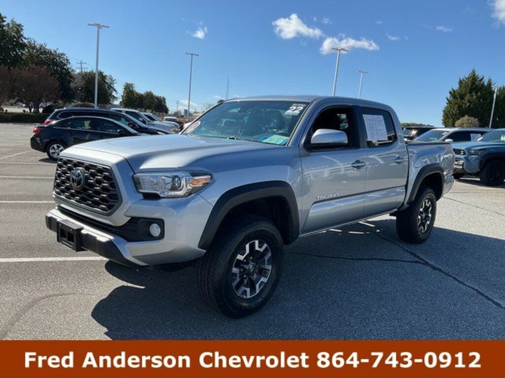 Check out all these great ABS brakes, Alloy wheels, Electronic Stability Control, Front dual zone A/C, Heated door mirrors, Illuminated entry, Low tire pressure warning, Remote keyless entry, Traction control, 120V/400W Deck Mounted AC Power, 6 Speakers, Air Conditioning, AM/FM radio: SiriusXM, Anti-whiplash front head restraints, Apple CarPlay/Android Auto, Auto High-beam Headlights, Auto-dimming Rear-View mirror, Auto-Dimming Rearview Mirror w/HomeLink, Automatic temperature control, Black Overfenders, Brake assist, Bumpers: body-color, Driver door bin, Dual front impact airbags, Dual front side impact airbags, Emergency communication system: Safety Connect with 1-year trial, Engine Immobilizer, Exterior Parking Camera Rear, Fabric Seat Trim (FD), Front anti-roll bar, Front Bucket Seats, Front Center Armrest, Front fog lights, Front reading lights, Front Seats, Front wheel independent suspension, Garage door transmitter: HomeLink, Knee airbag, Leather Shift Knob, Occupant sensing airbag, Outside temperature display, Overhead airbag, Overhead console, Panic alarm, Passenger door bin, Power door mirrors, Power driver seat, Power Sliding Rear Window w/Privacy Glass, Power steering, Power windows, Radio: AM/FM Radio, Rear step bumper, Security system, Speed control, Speed-sensing steering, Split folding rear seat, Steering wheel mounted audio controls, Tachometer, Telescoping steering wheel, Tilt steering wheel, Trip computer, Turn signal indicator mirrors, Variably intermittent wipers, and Wheels: 16" x 7J Machined Contrast Alloy. Celestial Silver Metallic 2022 Toyota Tacoma TRD Off-Road V6 CARFAX One-Owner. Clean CARFAX. Odometer is 21874 miles below market average! **STEERING WHEEL AUDIO CONTROLS**, **ONE-OWNER**, **NO ACCIDENT HISTORY ON CARFAX**, **LOCAL TRADE**, **KEYLESS ENTRY**, **GREAT CARFAX SERVICE HISTORY**, **BEDLINER**, **AUTOMATIC TRANSMISSION**, **4WD**, **BACK UP CAMERA**, **BLUETOOTH**, **POWER SEAT**, ABS brakes, Alloy wheels, Electronic Stability Control, Front dual zone A/C, Heated door mirrors, Illuminated entry, Low tire pressure warning, Remote keyless entry, Traction control.