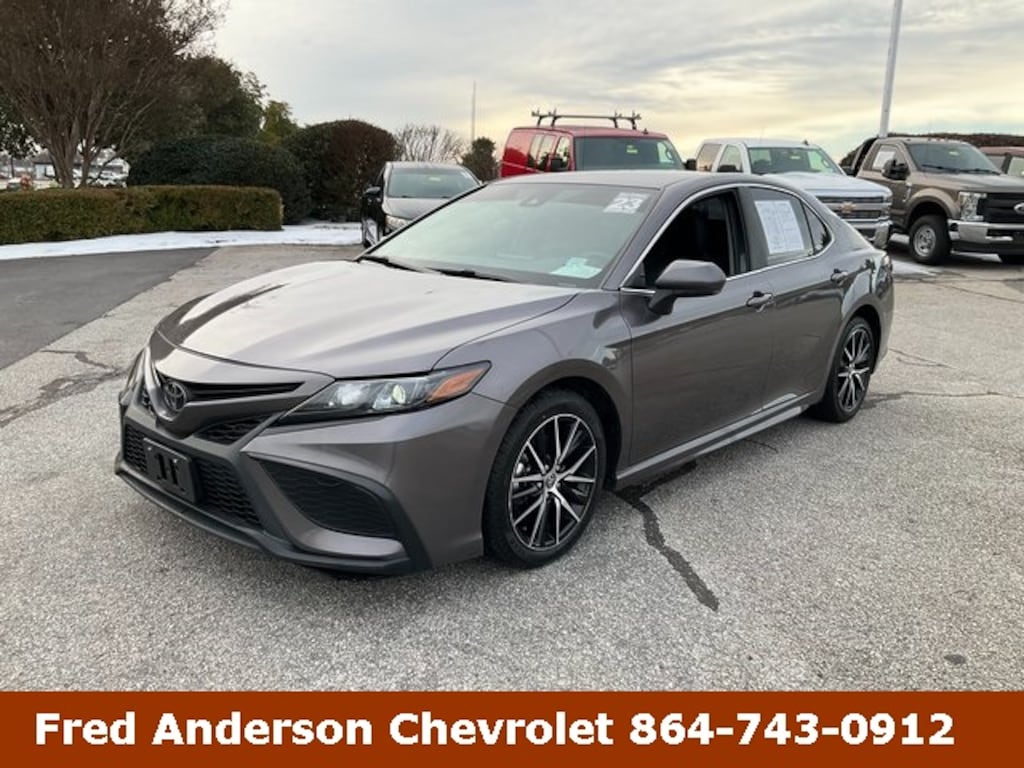 Check out all these great ABS brakes, Active Cruise Control, Alloy wheels, Electronic Stability Control, Front dual zone A/C, Heated door mirrors, Illuminated entry, Low tire pressure warning, Remote keyless entry, Traction control, 4-Wheel Disc Brakes, 6 Speakers, 8.0J x 18" Alloy Wheels, Air Conditioning, AM/FM radio: SiriusXM, Apple CarPlay/Android Auto, Auto High-beam Headlights, Automatic temperature control, Brake assist, Bumpers: body-color, Delay-off headlights, Driver door bin, Driver vanity mirror, Dual front impact airbags, Dual front side impact airbags, Emergency communication system: Safety Connect (1-year trial), Exterior Parking Camera Rear, Four wheel independent suspension, Front anti-roll bar, Front Bucket Seats, Front Center Armrest, Front reading lights, Fully automatic headlights, Knee airbag, Leather steering wheel, Occupant sensing airbag, Outside temperature display, Overhead airbag, Overhead console, Panic alarm, Passenger door bin, Passenger vanity mirror, Power door mirrors, Power driver seat, Power steering, Power windows, Radio data system, Radio: Audio, Rear anti-roll bar, Rear seat center armrest, Rear side impact airbag, Rear window defroster, Security system, Speed control, Speed-sensing steering, Split folding rear seat, Spoiler, Sport SofTex Seat Trim w/Fabric Inserts, Steering wheel mounted audio controls, Tachometer, Telescoping steering wheel, Tilt steering wheel, Trip computer, Turn signal indicator mirrors, and Variably intermittent wipers. Predawn Gray Mica 2023 Toyota Camry SE Odometer is 14385 miles below market average! **STEERING WHEEL AUDIO CONTROLS**, **LOCAL TRADE**, **KEYLESS ENTRY**, **GREAT CARFAX SERVICE HISTORY**, **AUTOMATIC TRANSMISSION**, **BACK UP CAMERA**, **BLUETOOTH**, **POWER SEAT**, **Heated Seats**, ABS brakes, Active Cruise Control, Alloy wheels, Electronic Stability Control, Front dual zone A/C, Heated door mirrors, Illuminated entry, Low tire pressure warning, Remote keyless entry, Traction control. 28/39 City/Highway MPG