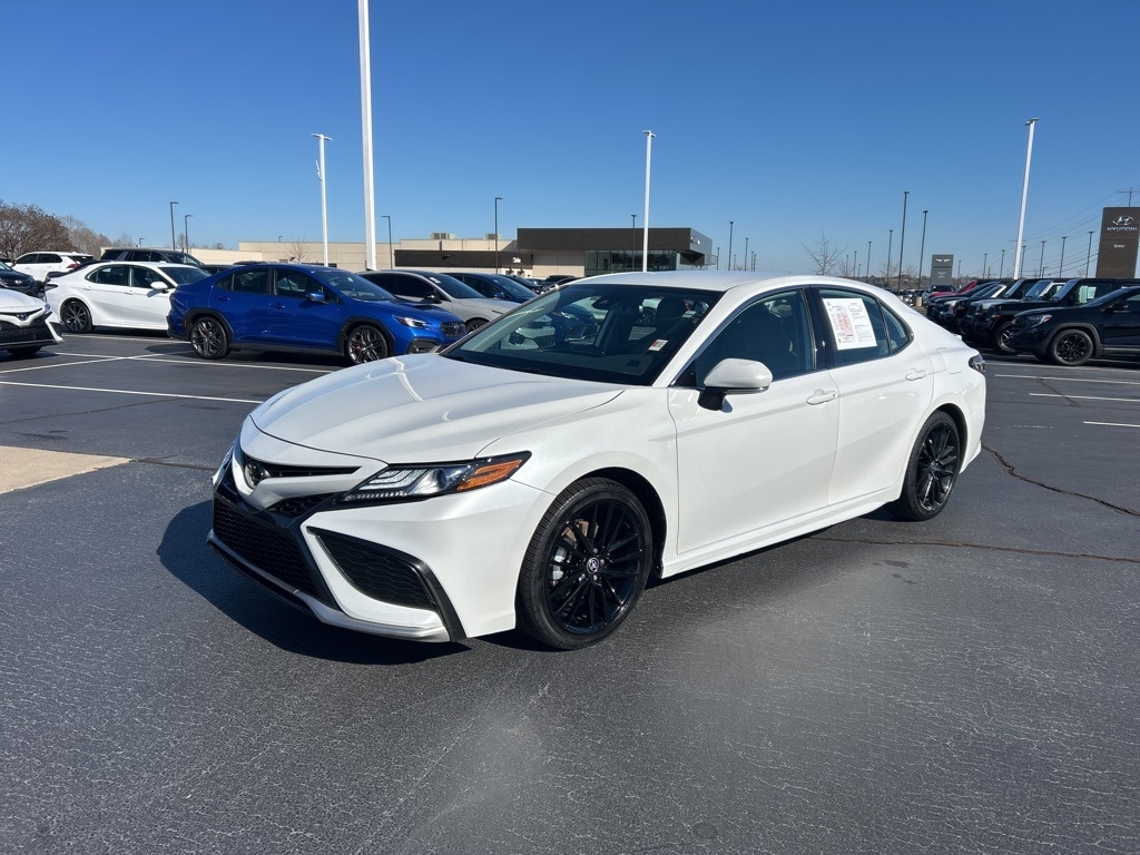 CARFAX One-Owner. Clean CARFAX. 2024 Toyota Camry XSE Ice Edge 4-Wheel Disc Brakes, 6 Speakers, ABS brakes, Air Conditioning, Alloy wheels, AM/FM radio: SiriusXM, Apple CarPlay/Android Auto, Auto High-beam Headlights, Auto-dimming Rear-View mirror, Automatic temperature control, Brake assist, Bumpers: body-color, Delay-off headlights, Driver door bin, Driver vanity mirror, Dual front impact airbags, Dual front side impact airbags, Electronic Stability Control, Emergency communication system: Safety Connect (1-year trial), Exterior Parking Camera Rear, Four wheel independent suspension, Front anti-roll bar, Front Bucket Seats, Front Center Armrest, Front dual zone A/C, Front reading lights, Fully automatic headlights, Garage door transmitter: HomeLink, Heated door mirrors, Heated front seats, Illuminated entry, Knee airbag, Leather steering wheel, Low tire pressure warning, Multi-Stage Heated Front Bucket Seats, Occupant sensing airbag, Outside temperature display, Overhead airbag, Overhead console, Panic alarm, Passenger door bin, Passenger vanity mirror, Perforated Leather Seat Trim, Power door mirrors, Power driver seat, Power passenger seat, Power steering, Power windows, Radio data system, Radio: Audio Plus, Rear anti-roll bar, Rear reading lights, Rear seat center armrest, Rear side impact airbag, Rear window defroster, Remote keyless entry, Security system, Speed control, Speed-sensing steering, Split folding rear seat, Spoiler, Steering wheel mounted audio controls, Tachometer, Telescoping steering wheel, Tilt steering wheel, Traction control, Trip computer, Turn signal indicator mirrors, Variably intermittent wipers, Wheels: 19" x 8J Alloy.
