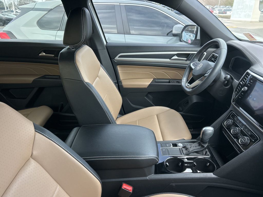 Recent Arrival! CARFAX One-Owner. 2021 Volkswagen Atlas Cross Sport 3.6L V6 SEL White Pearl 3.60 Axle Ratio, 4-Wheel Disc Brakes, 6 Speakers, ABS brakes, Active Blind Spot Monitor, Air Conditioning, Alloy wheels, AM/FM radio: SiriusXM with 360L, Auto High-beam Headlights, Auto-dimming Rear-View mirror, Automatic temperature control, Brake assist, Bumpers: body-color, Car-Net Safe & Secure 5-Year, Compass, Delay-off headlights, Driver door bin, Driver vanity mirror, Dual front impact airbags, Dual front side impact airbags, Electronic Stability Control, Emergency communication system: VW Car-Net services (capabilities require enrollment or subscription), Exterior Parking Camera Rear, Four wheel independent suspension, Front anti-roll bar, Front Bucket Seats, Front Center Armrest, Front dual zone A/C, Front fog lights, Front reading lights, Fully automatic headlights, Heated Comfort Front Bucket Seats, Heated door mirrors, Heated front seats, Heated steering wheel, Illuminated entry, Leather Shift Knob, Low tire pressure warning, Memory seat, Navigation System, Occupant sensing airbag, Outside temperature display, Overhead airbag, Overhead console, Panic alarm, Passenger door bin, Passenger vanity mirror, Perforated V-Tex Leatherette Seating Surfaces, Power door mirrors, Power driver seat, Power Liftgate, Power moonroof, Power passenger seat, Power steering, Power windows, Radio data system, Radio: MIB3 Discover Media w/8" Touchscreen Nav, Rain sensing wipers, Rear anti-roll bar, Rear reading lights, Rear seat center armrest, Rear window defroster, Rear window wiper, Remote keyless entry, Roof rack: rails only, Security system, Speed control, Speed-sensing steering, Split folding rear seat, Spoiler, Standard Suspension, Steering wheel mounted audio controls, Tachometer, Telescoping steering wheel, Tilt steering wheel, Traction control, Trip computer, Turn signal indicator mirrors, Variably intermittent wipers, Volkswagen Logo Puddle Lights, VW Care, Wheels: 20" 5-Spoke Silver Alloy (V71).